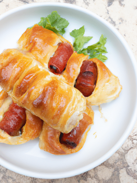 Parówki w cieście francuskim z warzywami
