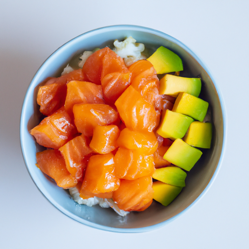 Wspaniała, zdrowa i kolorowa hawajska sałatka z łososiem, ryżem i świeżymi warzywami. Idealna na lekki obiad lub kolację.