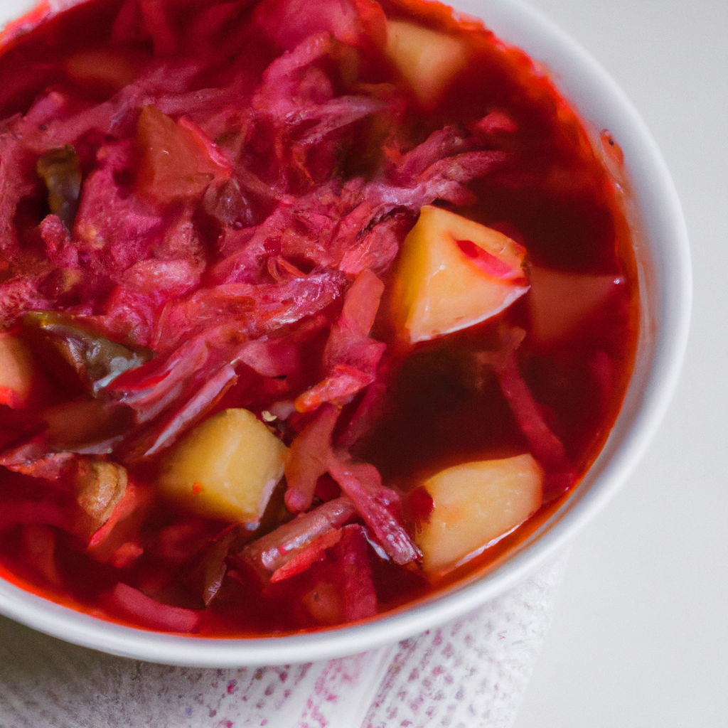 Tradycyjny ukraiński barszcz z burakami i kapustą kiszoną.