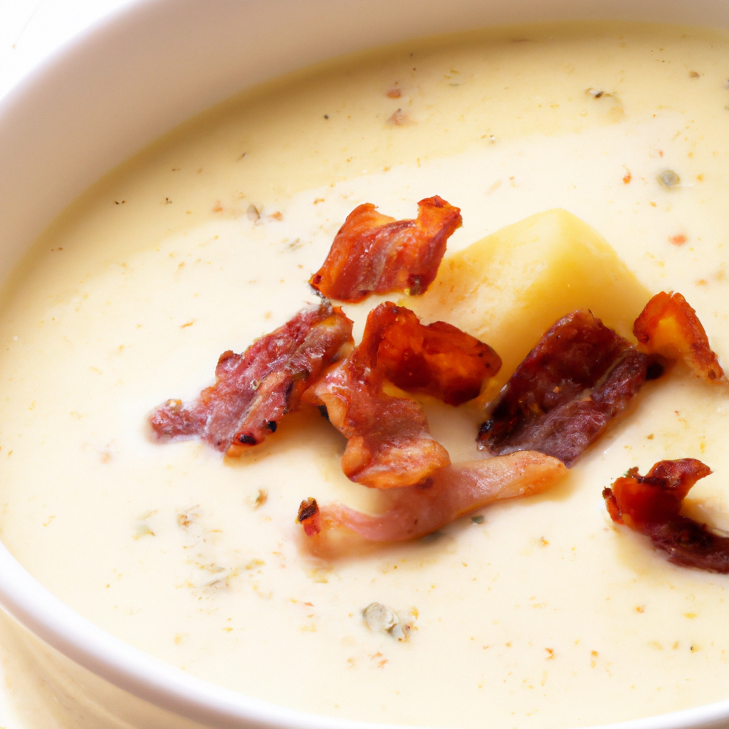 Ciepła, sycąca zupa ziemniaczana z chrupiącym boczkiem. Idealna na chłodniejsze dni.
