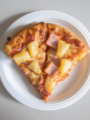 Klasyczna pizza hawajska z sosem pomidorowym, szynką, ananasem i serem mozzarella.