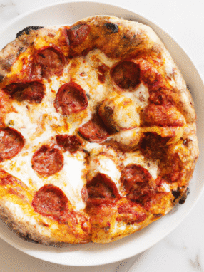 Sycylijska wersja popularnej na całym świecie pizzy, charakteryzująca się grubym, chlebowym spodem, pomidorami, serem i świeżymi ziołami.