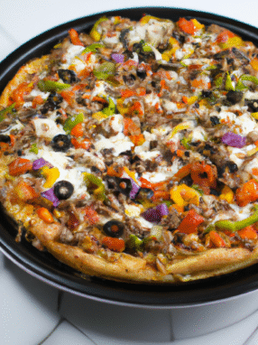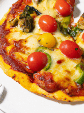 Pyszna, domowa pizza wegetariańska, pełna świeżych warzyw i aromatycznych ziół.