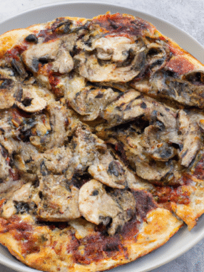 Smaczna i aromatyczna pizza grzybowa z serem mozzarella i oregano.