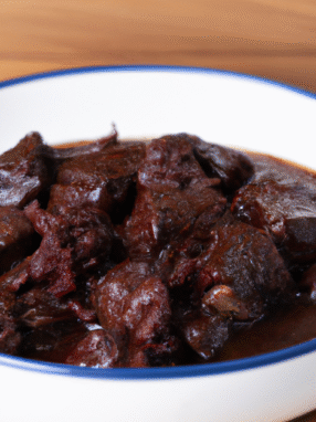 Tradycyjna francuska potrawa, która łączy wołowinę, czerwone wino i warzywa.