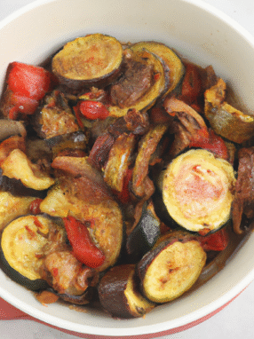 Tradycyjne francuskie danie z pieczonych warzyw, idealne jako zdrowy i sycący dodatek do obiadu.