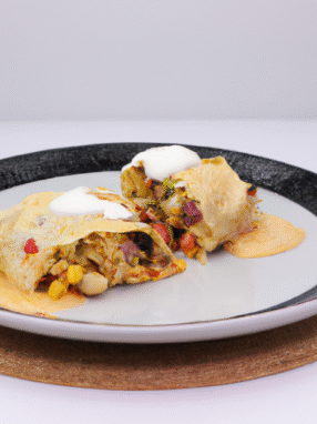 Tradycyjne meksykańskie danie z tortilli zawiniętej wokół nadzienia, pieczone w sosie chili.