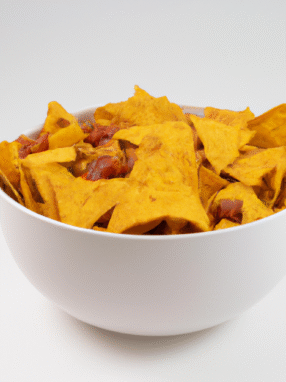 Pyszne, chrupiące nachos podawane z sosem serowym. Idealne na imprezę lub do filmu.