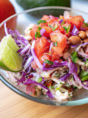 Pikantna, kolorowa sałatka inspirowana kuchnią meksykańską. Idealna na letnie dni.