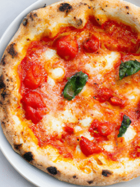 Tradycyjna włoska pizza Margherita z prostymi, ale smakowitymi składnikami, takimi jak pomidory, mozzarella i bazylia.