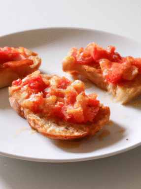 Klasyka włoskiej kuchni, idealna na przystawkę. Kusząca kombinacja pomidorów, czosnku i bazylii na chrupiącym pieczywie.